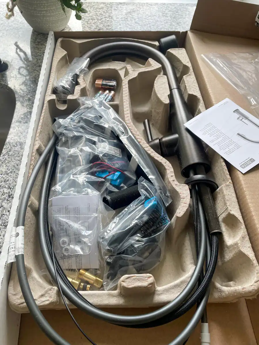 The plumbing scope involved complete removal of all Poly B plumbing throughout the home, replaced with Class A Rehau PEX featuring color-coded hot and cold lines with UV barrier protection. Every fixture received new connections using quality materials: Dahl and BMI shut-off valves for all supply lines, braided distribution hoses for faucets and toilets, brass exterior garden faucets, and a city-compliant laundry box setup. Paul also upgraded to a new 40-gallon Rheem water heater, replacing the aging unit while the plumbing system was being overhauled.