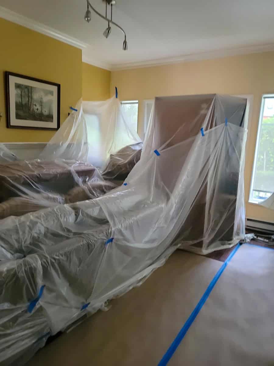 Urban Piping’s crew arrived and began with careful site preparation. The team laid Ram Board to protect tile and hardwood surfaces, placed professional-grade carpet liner in high-traffic areas, and covered furniture with plastic sheeting throughout work zones. Drywall was carefully cut and saved for reinstallation by others.
